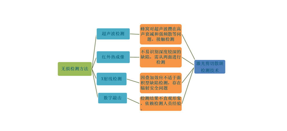 激光剪切散斑检测具有非接触、无污染、不受工件几何外形和尺寸限制、检测灵敏度高、检测效率高等优点;本质是测量缺陷区域在载荷作用下表面产生微变形(即离面位移)。